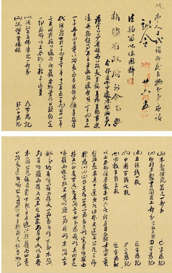 这是一份由新疆维吾尔自治区档案馆保存的斯坦因于1930年至1931年初在新疆盗掘古物的清单。